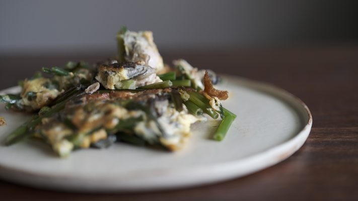 農諺說「正月蔥、二月韭」,那麼,和Evita一起來作韭菜鮮蚵麻油蛋吧!