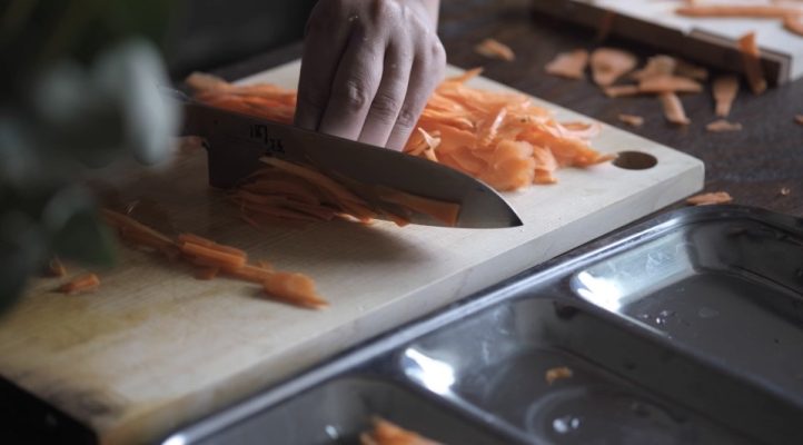 2. 紅蘿蔔(1/4根)洗淨、削皮、切絲