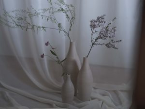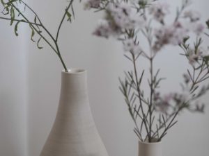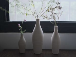 此系列花器器型簡約,保留原始且細膩的陶土紋理。