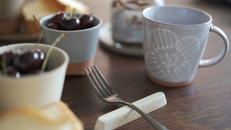 柔和色系卻是粗陶質感的手工製作Blanc系列,來自具有一百二十年歷史的壽山窯。