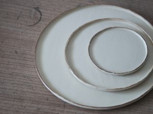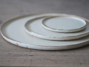 此系列擁有纖細扁平的器型與自然捲曲不平整的邊緣,全系列三個顏色是陶器皿中較少見的莫蘭迪色系,好看又百搭。