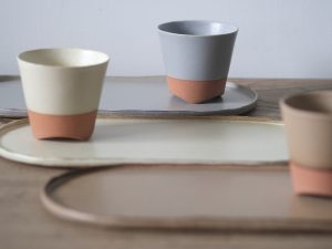 此系列擁有纖細扁平的器型與自然捲曲不平整的邊緣,全系列三個顏色是陶器皿中較少見的莫蘭迪色系,好看又百搭。