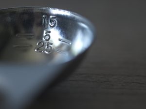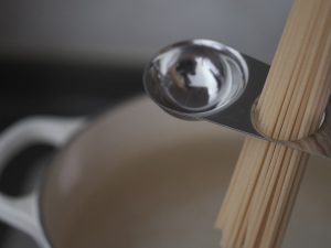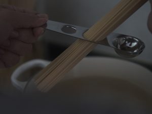 除了一大匙(15ml) 、一小匙(5ml)、1/2小匙(2.5ml)的刻度以外,還有兩個分別可以秤量一人份&兩人份義大利麵的圓孔。