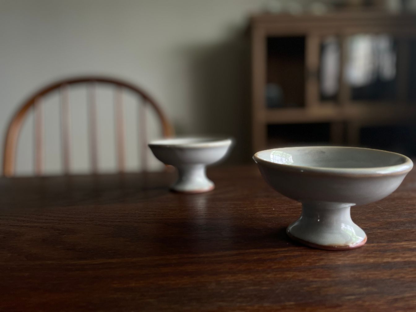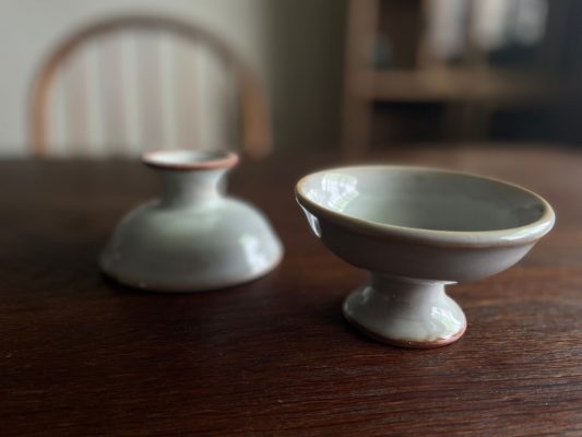 小巧可愛的高台小鉢,使用特殊釉料使表面微微亮面卻保有釉料不均的自然美感,底部一圈紅土色澤,增添溫暖感受。