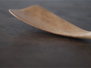 作品強調實用性與美感並重。木勺前端的特殊弧形,便於攪拌與清理鍋邊食材。柄部設計逐漸加粗,符合手部握持的自然曲線。擅於運用木材紋理與結構,融合傳統木工技術與現代設計理念,呈現簡約而有溫度的生活美學。