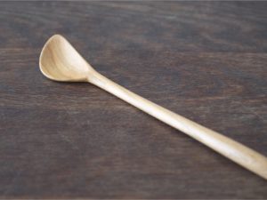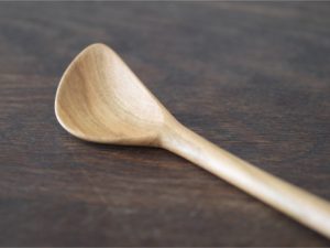 這款木製料理勺以山櫻木製作,輕盈好操控,尖端特別設計成勺狀曲線,能夠溫柔貼合鍋面與瓶底,讓翻炒、攪拌或取用深瓶食材都更順手。