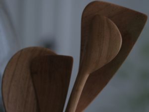 作品強調實用性與美感並重。木勺前端的特殊弧形,便於攪拌與清理鍋邊食材。柄部設計逐漸加粗,符合手部握持的自然曲線。擅於運用木材紋理與結構,融合傳統木工技術與現代設計理念,呈現簡約而有溫度的生活美學。