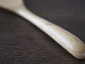 作品強調實用性與美感並重。木勺前端的特殊弧形,便於攪拌與清理鍋邊食材。柄部設計逐漸加粗,符合手部握持的自然曲線。擅於運用木材紋理與結構,融合傳統木工技術與現代設計理念,呈現簡約而有溫度的生活美學。