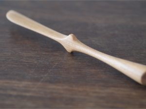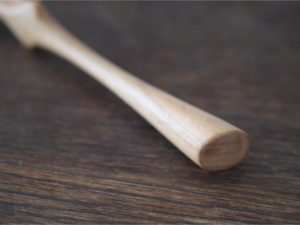 作品強調實用性與美感並重。木勺前端的特殊弧形,便於攪拌與清理鍋邊食材。柄部設計逐漸加粗,符合手部握持的自然曲線。擅於運用木材紋理與結構,融合傳統木工技術與現代設計理念,呈現簡約而有溫度的生活美學。