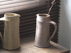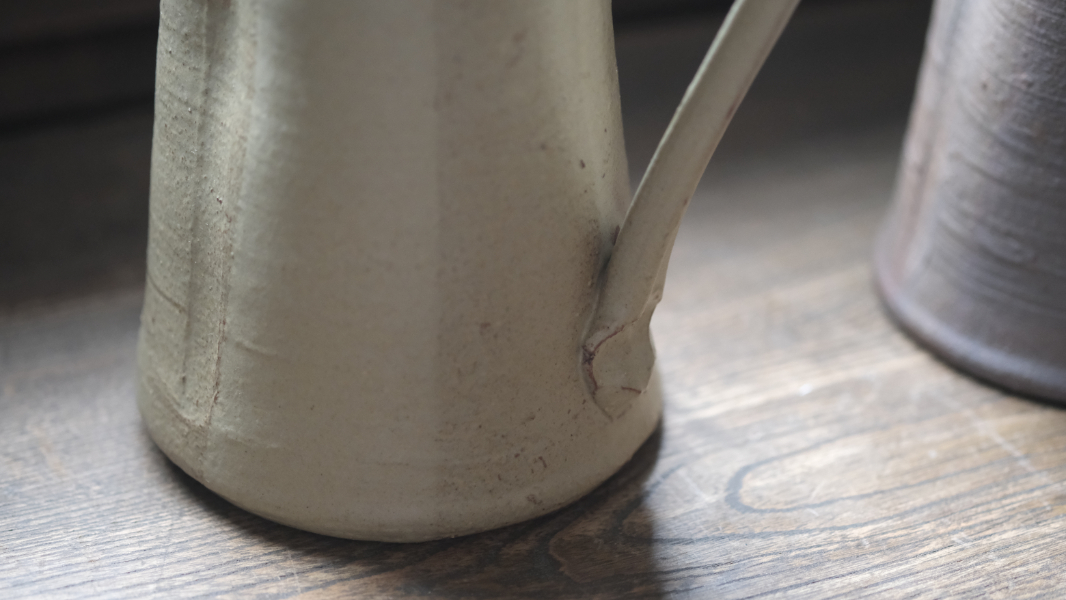 以土與燒成為創作核心,保留材料本身的表情,讓器物呈現自然的風化質地。
