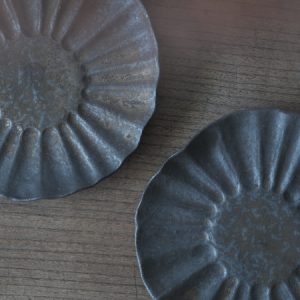 此金環菊花皿,俯視像花、平視像葉,盤緣有如波浪般的高低起伏,令人想跟著盤旋、婆娑起舞。