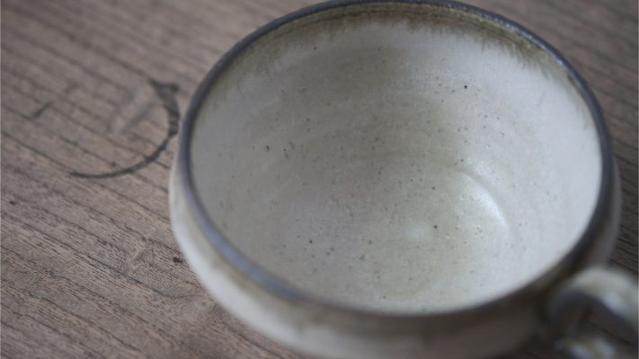 杯緣的釉料色澤,從外觀看來像是滿溢而出的卡布奇諾,往內則有如殘留在杯緣的焦糖糖霜。