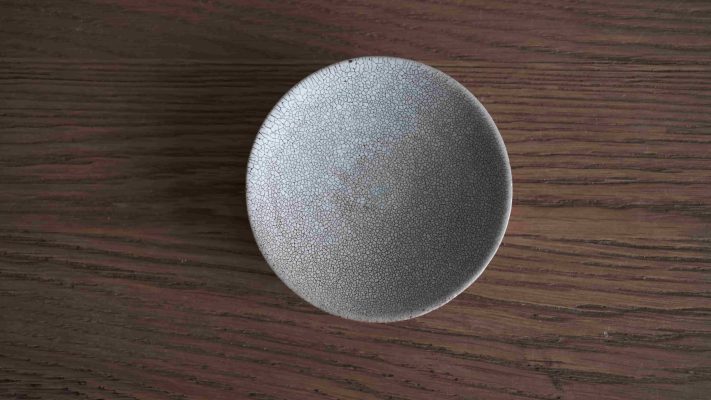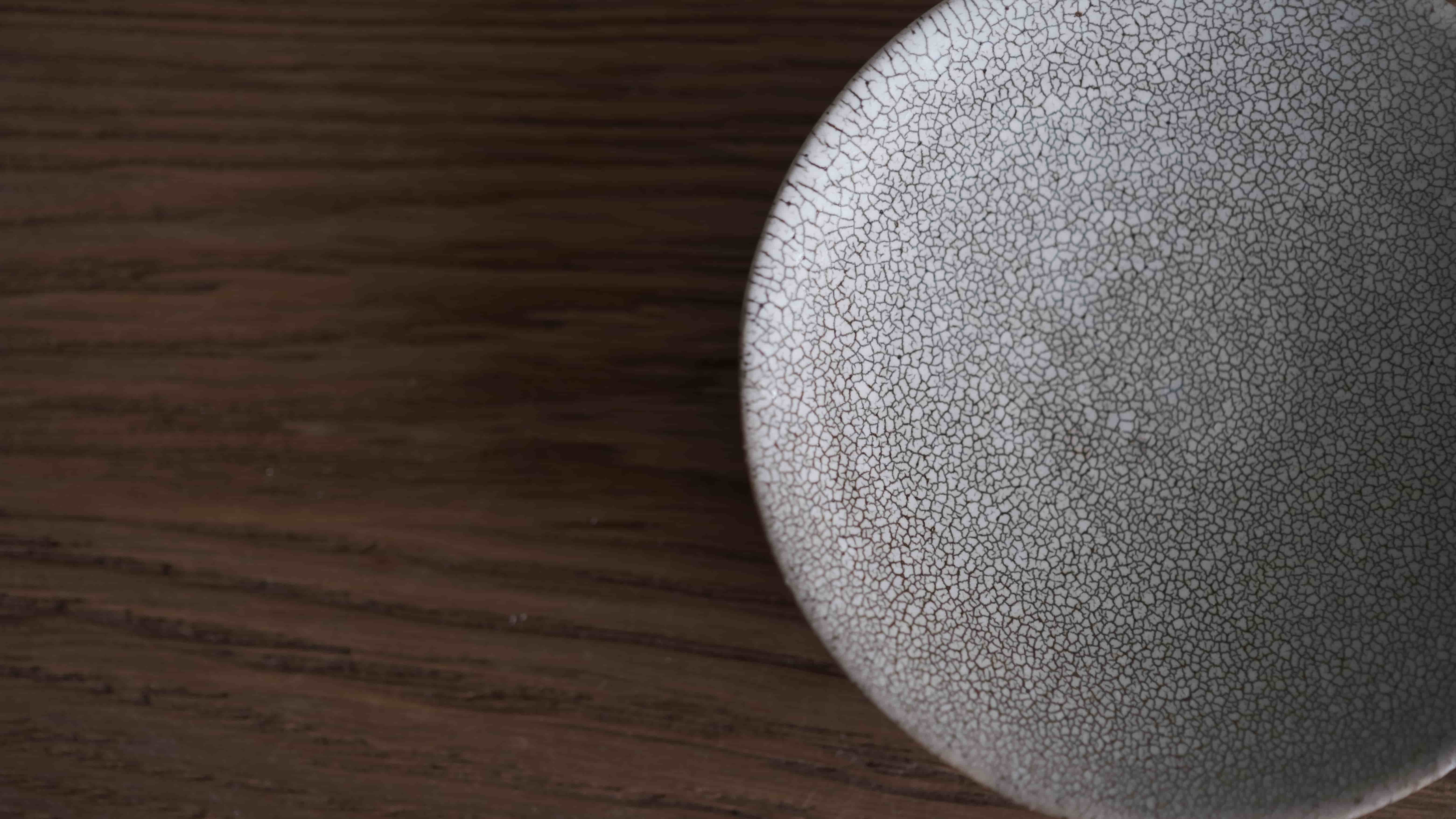 「梅花皮」為手工製作過程中,由於陶土和釉料熱漲冷縮的頻率差異,所造就的一種特殊紋路。其獨特的釉面裂紋,在茶道的世界裡,特別受歡迎,人們享受觀察其使用過後的獨有器皿表情。