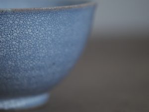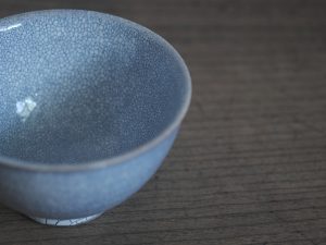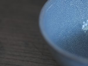 「吳須かいらぎ」呈現出來的,是淺淺柔柔的淡藍,較一般器皿的顏色特殊,卻能輕易搭配各式各樣的點心與飲品。