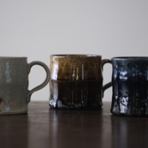 此系列以玻璃釉的清透綠韻、飴釉的溫潤琥珀、瑠璃釉的深藍光澤交織而成。自然的窯痕與釉裂增添手感層次,展現質樸與深邃並存的器物之美。