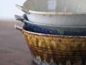 此系列以玻璃釉的清透綠韻、飴釉的溫潤琥珀、瑠璃釉的深藍光澤交織而成。自然的窯痕與釉裂增添手感層次,展現質樸與深邃並存的器物之美。