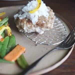 可用於生魚片、天婦羅、油炸食品等瀝網,底部有腳可穩固站在盤子上。