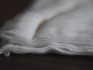 六重紗系列,將六層鬆散編織的純棉紗布縫合在一起。