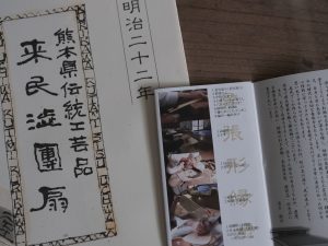 據說在江戶時代 慶長五年(1600年),四國丸龜的一位旅僧,傳授了此團扇的製作方法,作為給予留宿的謝禮。肥後(現今熊本)初代藩主細川忠立公為獎勵来民地區,而讓来民地區的人開始製作團扇,使此技藝在該地區廣泛生產。