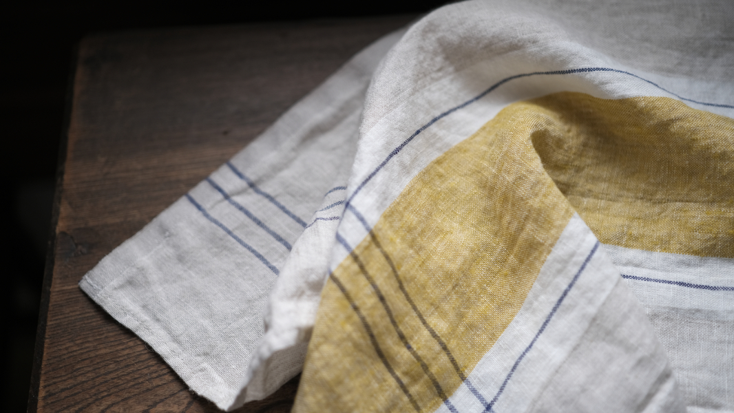 亞麻本身具有良好的吸水性與透氣性,在反覆使用與洗滌之中,會逐漸變得柔軟,也慢慢留下屬於生活的痕跡。