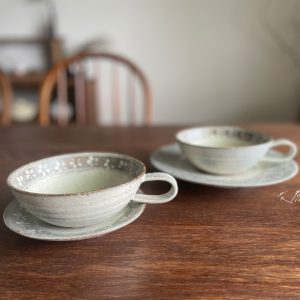 壓印的凹凸花紋手感,與自然的窯燒黑點、不均勻釉料色澤等,無一處不凸顯三島花紋器皿的溫潤陶土質地。