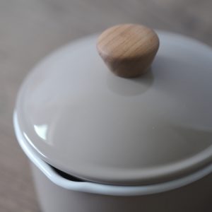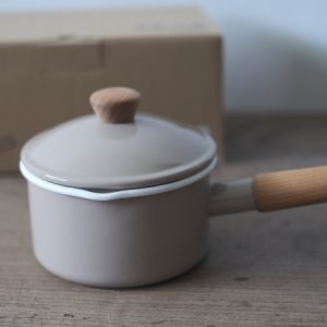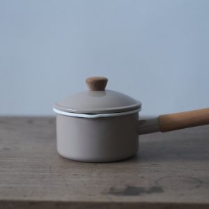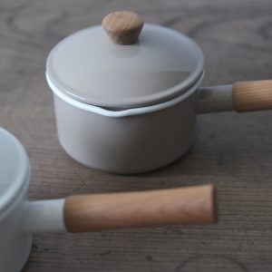 14cm片手鍋為最適合日常使用的尺寸。天然木和琺瑯結合的設計溫馨柔和、兩側設計有尖嘴方便傾倒液體、整體輕巧易握,是集美麗與實用的琺瑯單手鍋。