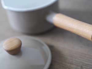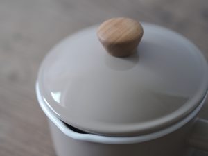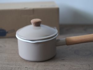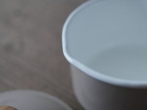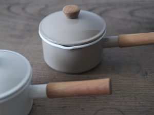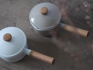 14cm片手鍋為最適合日常使用的尺寸。天然木和琺瑯結合的設計溫馨柔和、兩側設計有尖嘴方便傾倒液體、整體輕巧易握,是集美麗與實用的琺瑯單手鍋。