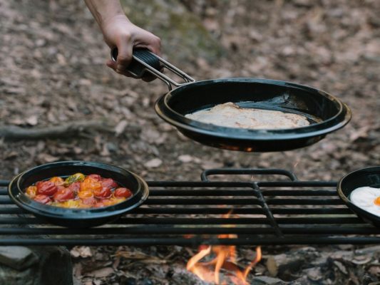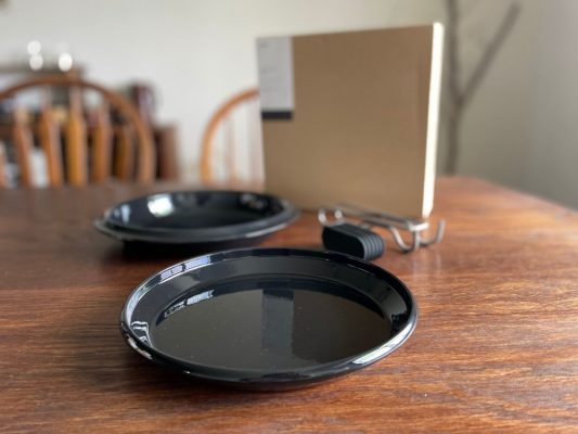 此系列每組皆含一個多功能手柄和兩個深淺不一的琺瑯餐盤,可當作兩個餐盤使用,也可當作鍋與蓋。。