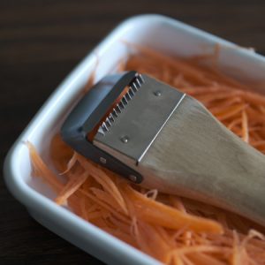 切出來約為3mm細絲,這個粗度的根莖類食材口感清脆,特別適合做爽脆開胃且冷熱皆宜的紅蘿蔔牛蒡金平煮!