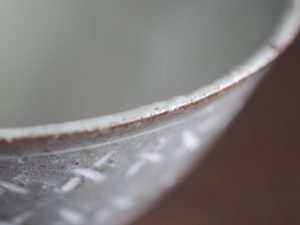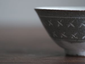 自然的窯燒黑點與釉料不均的樸素模樣,因為邊緣x字設計又顯得更為生動活潑。