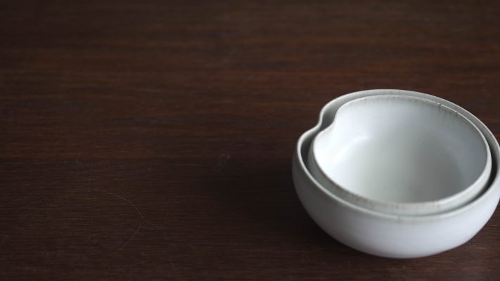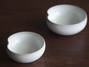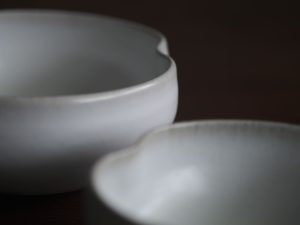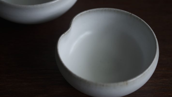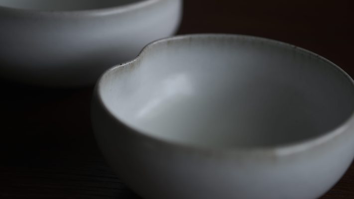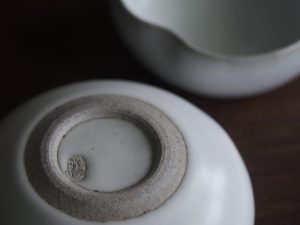 有別於一般瓷器,殘雪系列在製程中加入含鐵量高的丸山陶石,使其看起來有如陶器一般溫潤樸質,卻是更高溫燒製以求更耐久用。