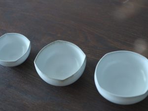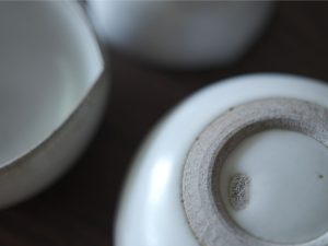 有別於一般瓷器,殘雪系列在製程中加入含鐵量高的丸山陶石,使其看起來有如陶器一般溫潤樸質,卻是更高溫燒製以求更耐久用。