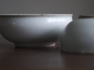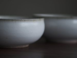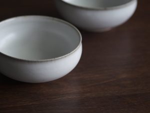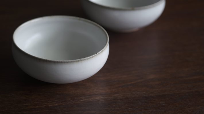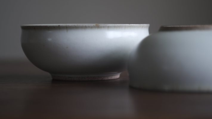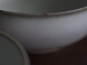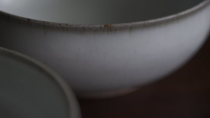 有別於一般瓷器,殘雪系列在製程中加入含鐵量高的丸山陶石,使其看起來有如陶器一般溫潤樸質,卻是更高溫燒製以求更耐久用。