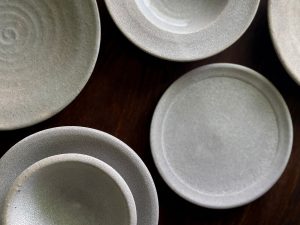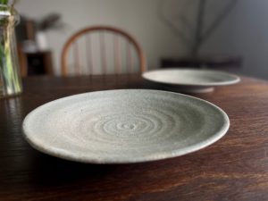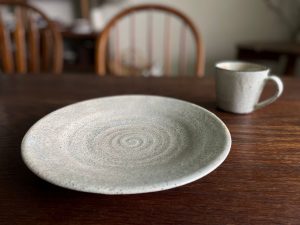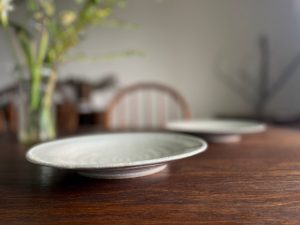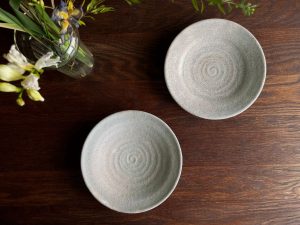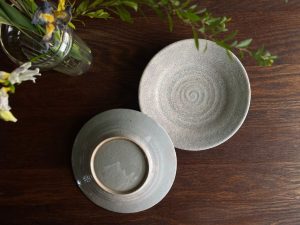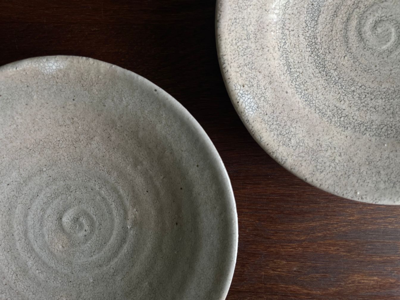 出自姿月窯的梅花皮系列陶器,把握梅花皮獨特質感,並藉由盤緣的弧度變化出柔美姿態,很是優雅耐看。
