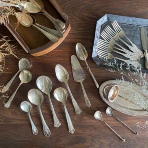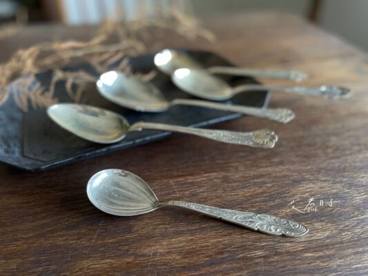 古董銀製餐具們,每只皆有其特殊造型與飾紋,皆為現代新品中難以找到的款式。