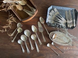 古董銀製餐具們,每只皆有其特殊造型與飾紋,皆為現代新品中難以找到的款式。