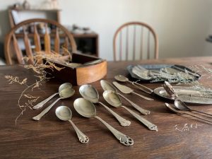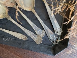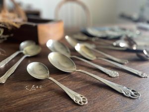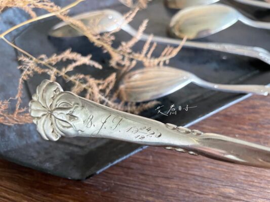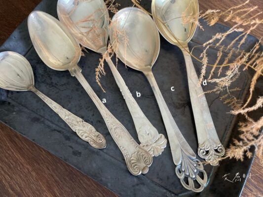 古董銀製餐具們,每只皆有其特殊造型與飾紋,皆為現代新品中難以找到的款式。