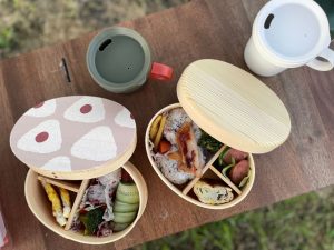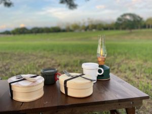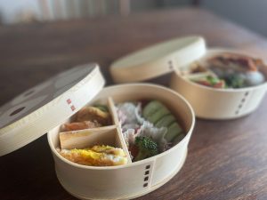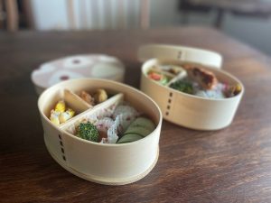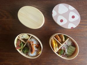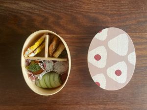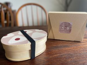 有著可愛設計的傳統曲木飯盒,由於是天然木製品,有助於調節飯盒內的水份含量,使米飯在夏季不易變質,在冬季不易變硬,能保持米飯在不失去風味的情況下食用。