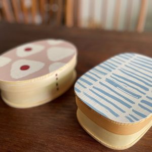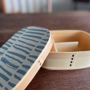 有著可愛設計的傳統曲木飯盒,由於是天然木製品,有助於調節飯盒內的水份含量,使米飯在夏季不易變質,在冬季不易變硬,能保持米飯在不失去風味的情況下食用。