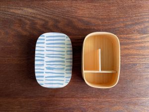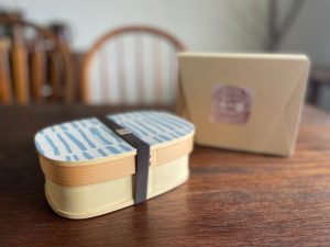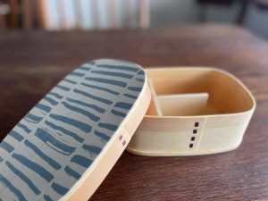 有著可愛設計的傳統曲木飯盒,由於是天然木製品,有助於調節飯盒內的水份含量,使米飯在夏季不易變質,在冬季不易變硬,能保持米飯在不失去風味的情況下食用。